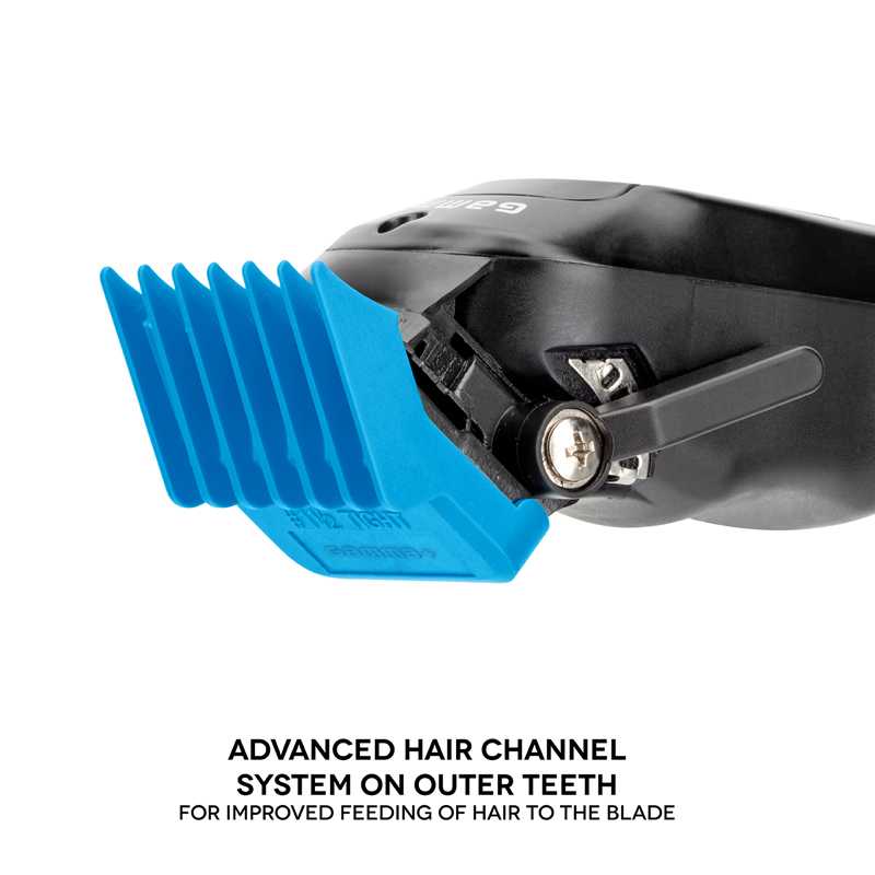 • Sistema avanzado de canales en los dientes exteriores para mejorar la introducción del pelo en la hoja.