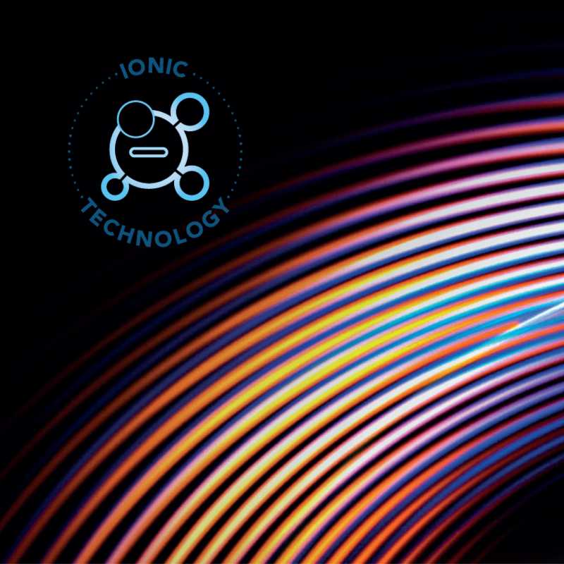 Dual Ionic Technology: generatore ionico con interruttore on-off che controlla l’emissione di ioni negativi in funzione del risultato che si desidera ottenere sui capelli. Quando è attivato (I) il capello risulta più luminoso, liscio e senza elettrostaticità. Escludendolo (O), si ottiene più volume e consistenza.